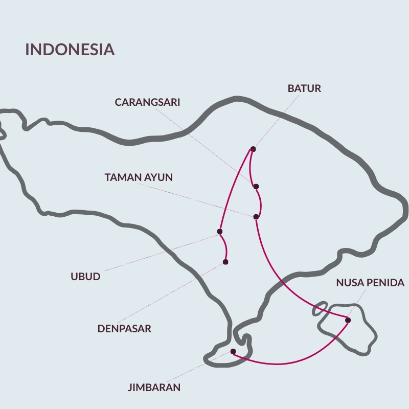 Dopo la colazione, visiterete il tempio di Taman Ayun, il “Tempio del giardino sull’acqua”, uno dei templi reali dell’isola, inserito nella lista dei patrimoni dell’Unesco. Composto da 50 edifici, tra i quali molti santuari a diversi livelli, è considerato come uno dei templi indù più belli di tutta l’Indonesia, grazie alle architetture complesse e raffinate, che hanno risentito dell’influenza cinese. Proseguirete alla volta del tempio di Ulun Danu, il più importante tempio shivaista dell’isola, che sorge sulle rive del lago Beratan, formatosi sul cono di un vulcano spento. Vi dirigerete quindi verso la cascata gemella di Banyumala, dalle acque limpidissime e circondata da una natura rigogliosa. Lungo il percorso avrete modo di fare soste per ammirare i laghi di Buyan e Tambligan, all’interno di una antica caldera vulcanica. Infine, potrete ammirare le famose risaie terrazzate di Jatiluwih, inserite nell’elenco dei patrimoni dell’Unesco. Al termine dell’escursione, effettuerete il check-in nel vostro hotel. Cena libera e pernottamento