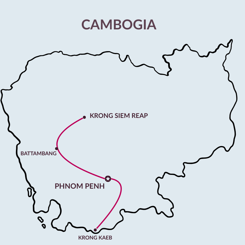 All’interno del Sud-est asiatico, la Cambogia è l’erede dell’antico e potente impero Khmer. I templi di Angkor, che per dimensioni e vastità non hanno uguali nel continente, infatti, sono dei capolavori storici ed architettonici che permettono di immaginare quale fosse stata la grandezza dei Khmer. La vita dei cambogiani è soprattutto rurale, grazie al fiume Mekong e al grande lago Tonle Sap oppure alle montagne del nord, ed è una vita semplice e rispettosa. Nonostante il genocidio perpetrato da Pol Pot meno di 50 anni fa, il popolo cambogiano, composto da diverse etnie, è sempre pronto ad accogliere il visitatore con grande disponibilità e con il sorriso sulle labbra. Questa semplicità si ritrova anche nella cucina tradizionale che, sebbene sia molto simile a quella del vicino Vietnam, mantiene la sua peculiarità fatta di ingredienti semplici. Infine, il paese presenta alcune delle spiagge più belle ed incontaminate del sud-est asiatico, non ancora colpite al turismo di massa e ideali per rilassarsi al termine del viaggio.