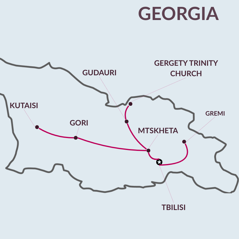Questo è un viaggio in un paese, piccolo come estensione, ma famoso per le sue montagne (regioni come lo Svaneti e Tusheti sono tra le più belle dove poter effettuare trekking). La Georgia ha davvero molto da offrire ai visitatori: una storia ricchissima di avvenimenti che ha mostrato come i georgiani abbiano lottato sempre per la propria indipendenza, la presenza del cristianesimo (insieme all’Armenia questo paese è rimasto una vera e propria isola cristiana in un’area dominata dall’Islam) che ha lasciato in eredità chiese e monasteri favolosi, la variegata cucina locale con il fiore all’occhiello della produzione di vino, ritenuta la prima vinificazione della storia, e, soprattutto, la splendida e genuina ospitalità del popolo georgiano. Scegliere questo tour permetterà di scoprire una nazione troppo spesso sottovalutata dal punto di vista turistico ma che è in grado di regalare una esperienza di viaggio unica e un ricordo da portare nel cuore, magari ascoltando il tipico canto polifonico di antiche origine in cui i georgiani sono davvero dei maestri