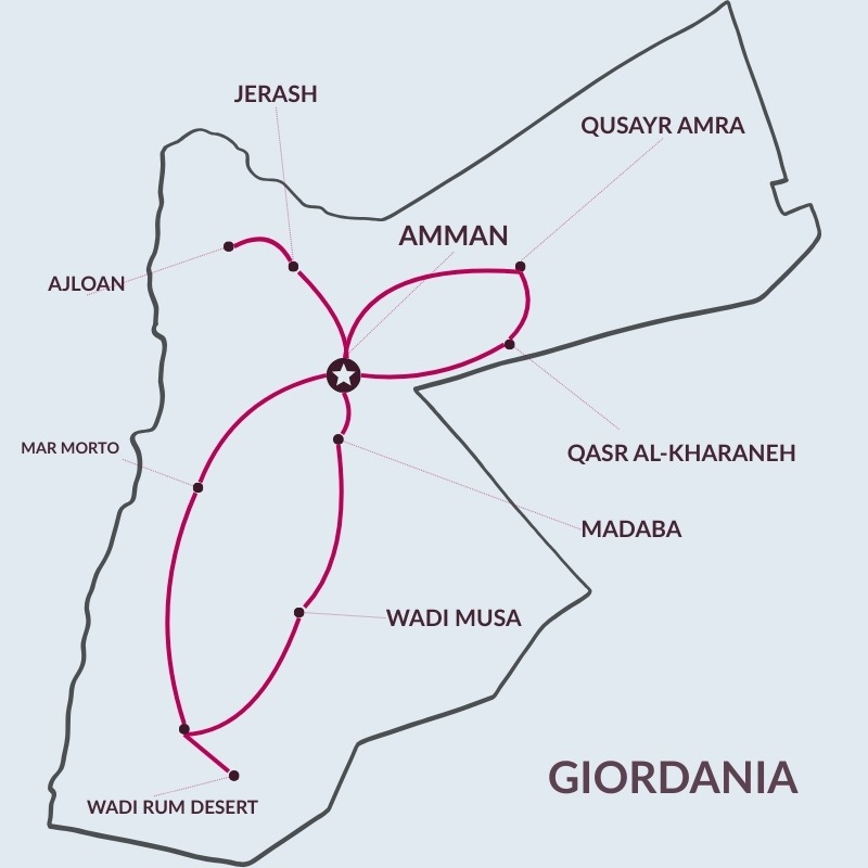 Un viaggio in Giordania è una vera e propria scoperta. In primo luogo, il paese è stato al centro dello sviluppo di antiche civiltà, le quali hanno lasciato una eredità storica e archeologica di importanza mondiale e siti meravigliosi, in alcuni casi veramente leggendari come solo Petra può essere. In secondo luogo, la Giordania presenta paesaggi naturali che vanno dalle grandi distese desertiche, utilizzate anche come scenografia in molti film di successo, alla bellezza del mar Rosso, senza dimenticare l’unicità del Mar Morto, il punto più basso della terra, dove si può provare l’incredibile esperienza di galleggiare nell’acqua senza il minimo sforzo. Ma la Giordania è anche rinomata per l’accoglienza della popolazione locale: in questo paese l’ospitalità è un vero e proprio valore radicato nella cultura e lo si avverte fin dal primo momento dell’arrivo. Infine, è un paese che sa valorizzare anche la sua cucina, dove si fondono gli ingredienti tipici del Mediterraneo con la tradizione araba