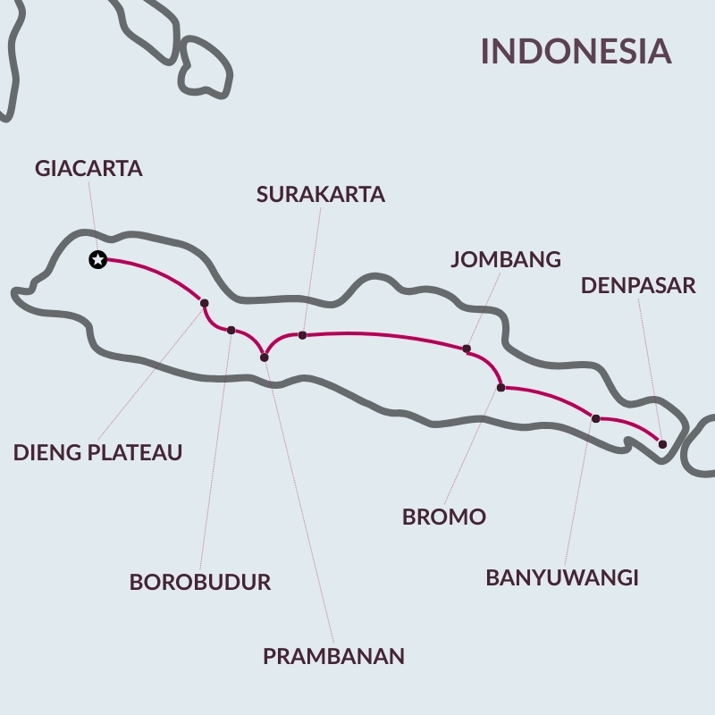 Itinerario completo per scoprire l'isola di Java, la sua cultura, le sue tradizioni, la sua natura per terminare con un breve soggiorno al mare