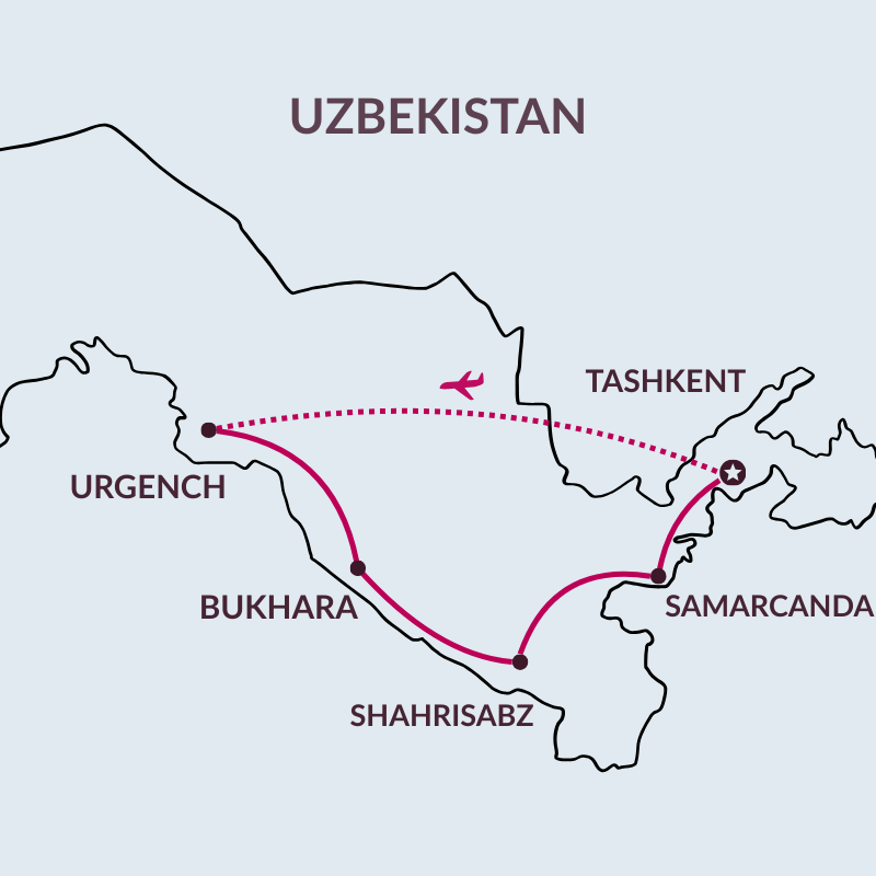 Tour di 8 giorni dedicato alle meraviglie storiche dell’Uzbekistan. Il viaggio inizia a Tashkent e prosegue verso Khiva, affascinante città fortificata dall’atmosfera medioevale. Si continua per Bukhara, antica oasi carovaniera che conserva un ricco patrimonio architettonico islamico, e per Samarcanda, celebre per il Registan, il mausoleo di Gur-e Amir e la moschea di Bibi-Khanum. Il rientro a Tashkent conclude un percorso tra le città più iconiche della Via della Seta.